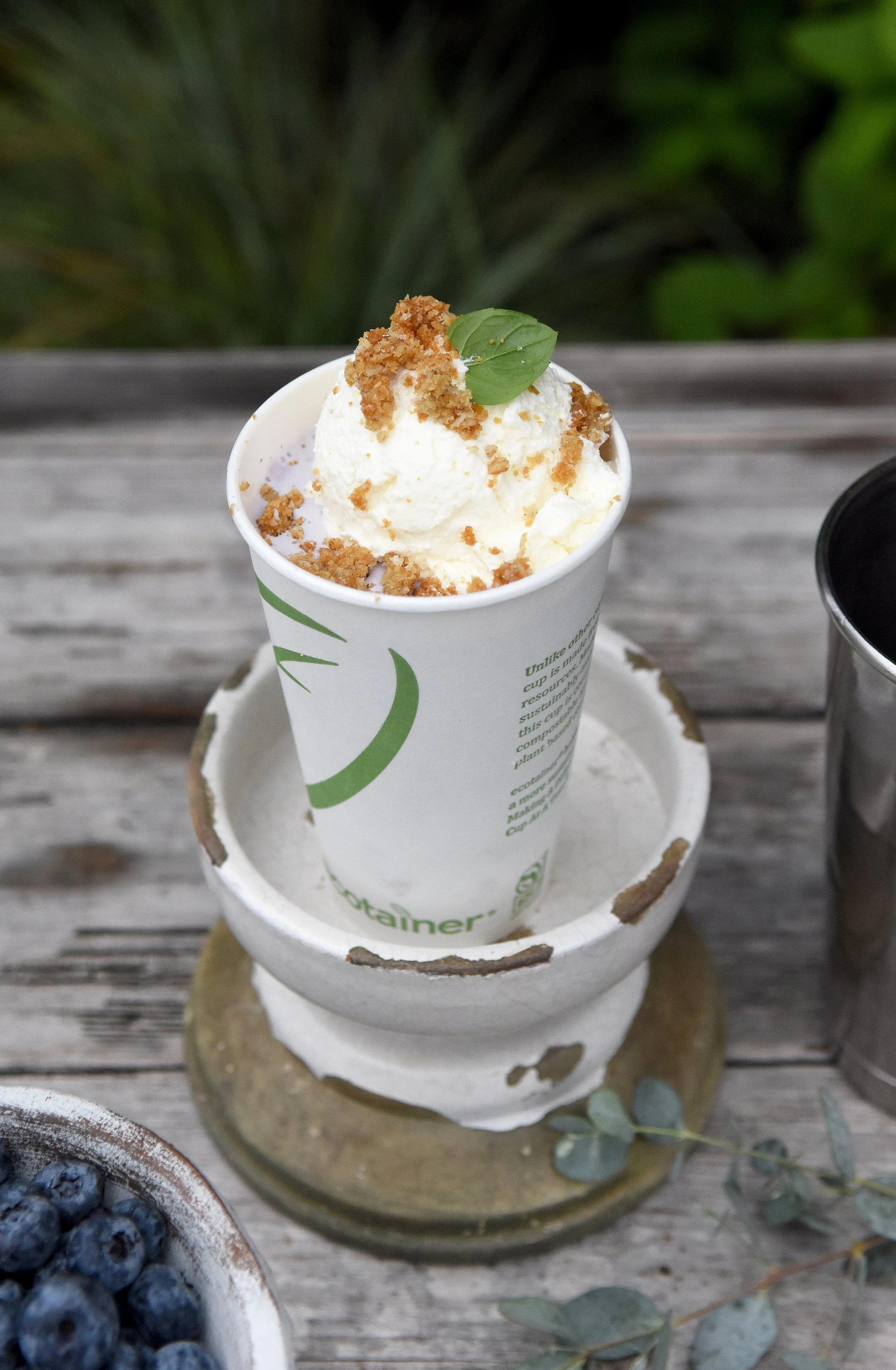 Made with locally-grown blueberries, Homeland Creamery milk, and topped with whipped cream, mint and a sprinkling of our aggression cookie crumbles! So summery!