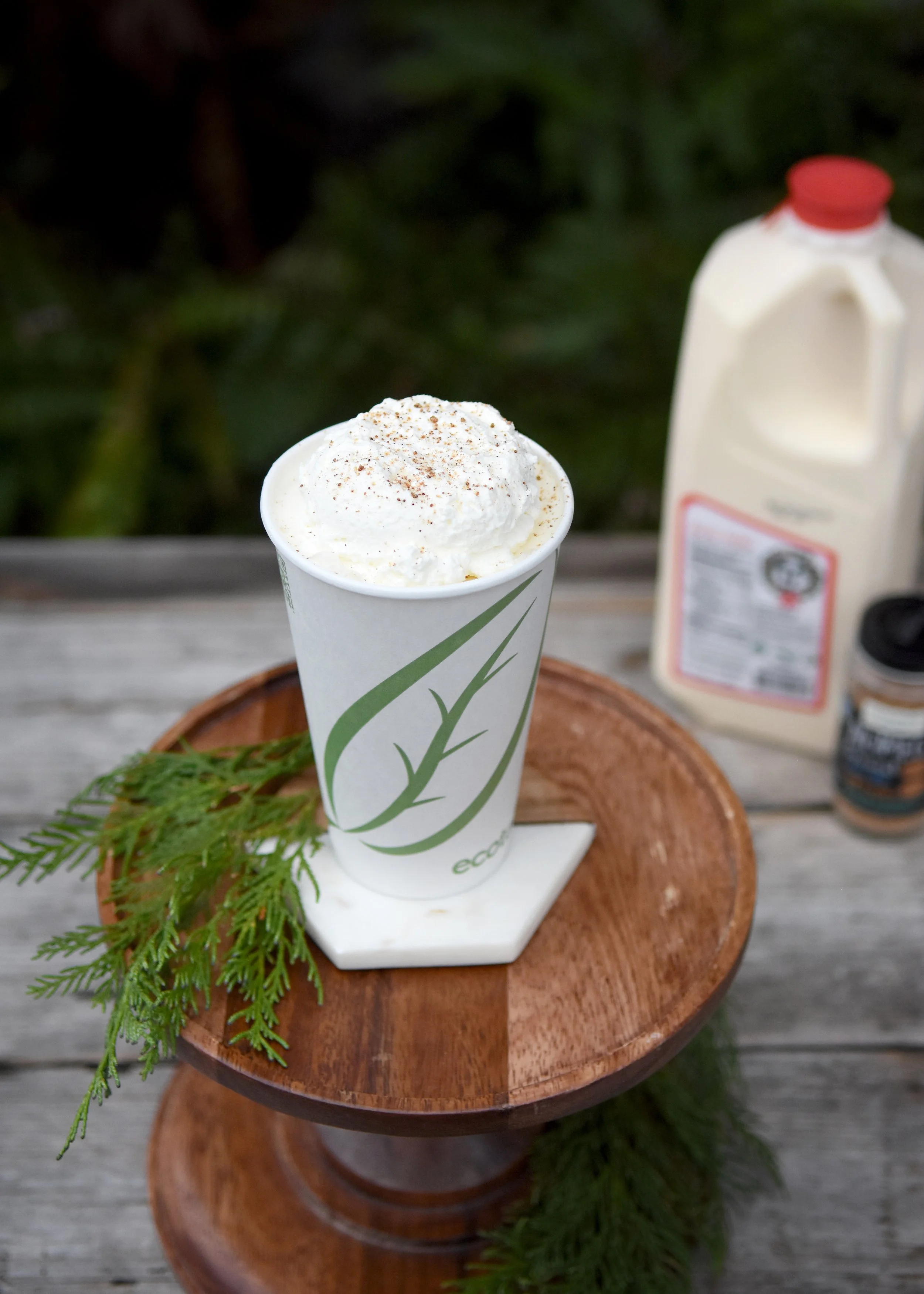 Made with Homeland Creamery vanilla ice cream, eggnog and milk! Topped with fresh whipped cream and a sprinkle of nutmeg.